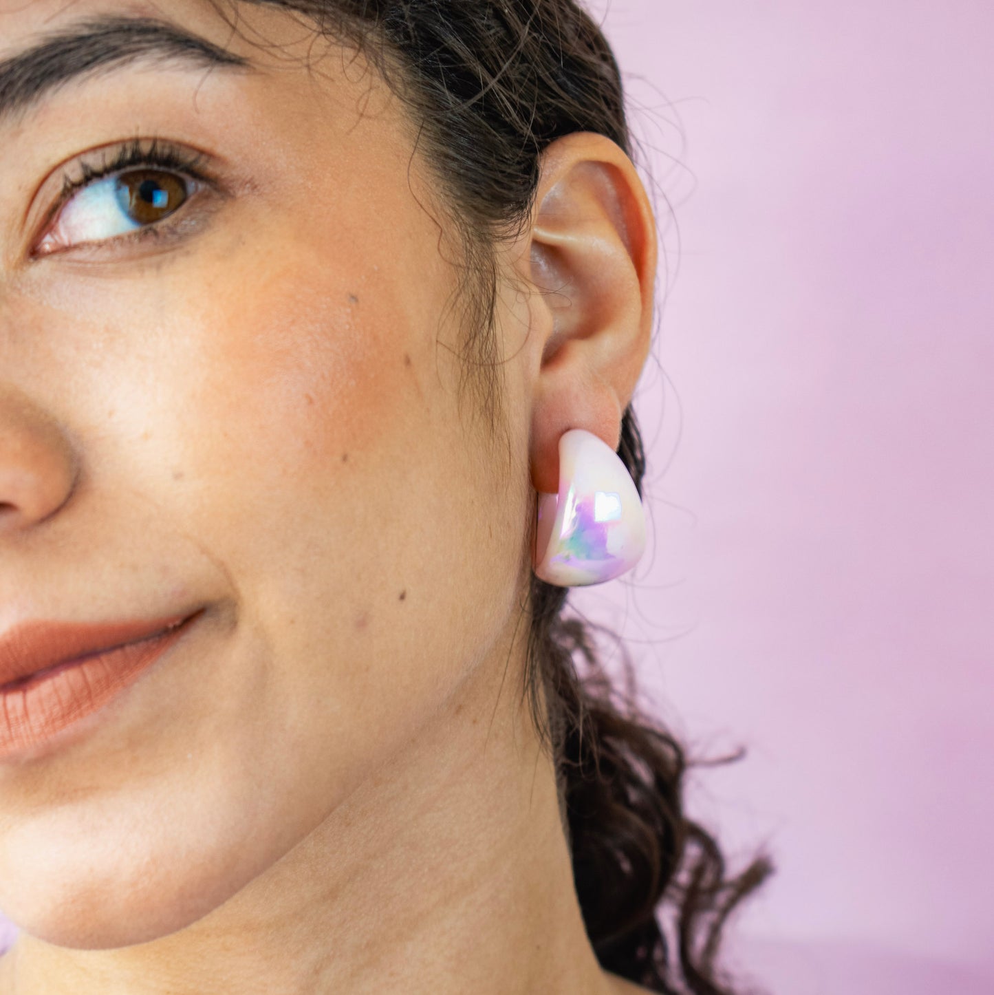 Candongas Acrílico Mini Tornasol Rosa