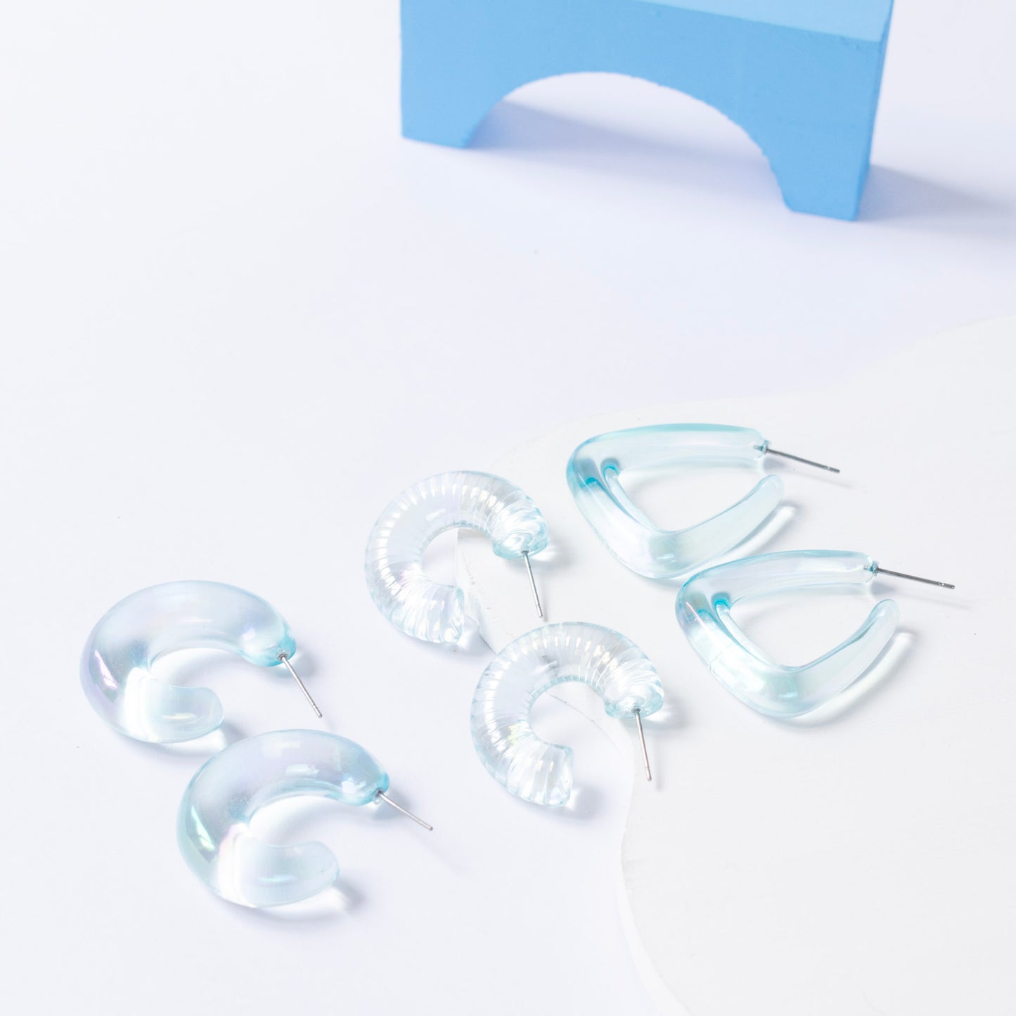 Set x3 Aretes Tornasol Azul